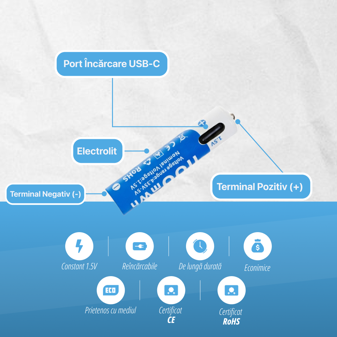 ✅ Putere constantă 1.5V – performanță stabilă până la descărcare